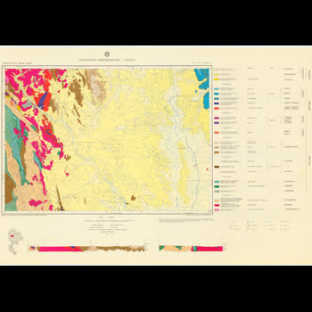 | คำอธิบาย : กองธรณีวิทยา กรมทรัพยากรธรณี ได้ดําเนินการสํารวจธรณีวิทยาอย่างเป็นระบบต่อเนื่องมาเพื่อให้ได้แผนที่ธรณีวิทยารากฐาน มาตราส่วน 1:250,000 ทั่วประเทศ โดยสำรวจแล้วเสร็จในปี พ.ศ. 2523 ซึ่งแผนที่ธรณีวิทยามาตราส่วน 1:250,000 ระวางแรกที่จัดพิมพ์ขึ้นคือระวางจังหวัดลําปาง ซึ่งสำรวจโดยนักธรณีวิทยาไทย และได้พิมพ์ออกเผยแพร่รวมทั้งสิ้น 46 ระวาง ครอบคลุมพื้นที่ทั่วทั้งประเทศ 514,912 ตารางกิโลเมตร |