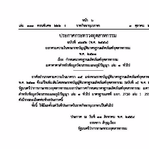 "มอก.2730 เล่ม 1 – 2559 มาตรฐานผลิตภัณฑ์อุตสาหกรรม เมตาดาตาสำหรับข้อมูลวัฒนธรรมและภูมิปัญญา เล่ม 1 ทั่วไป".