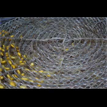 | คำอธิบาย : จ่อเลี้ยงไหม เป็นอุปกรณ์สำหรับเลี้ยงหนอนไหมในระยะที่เรียกว่า ไหมสุก คือ หนอนไหมที่แก่เต็มที่และพร้อมจะสร้างเส้นใยหรือสร้างรัง มีลักษณะตัวเป็นสีเหลืองใส และหยุดกินอาหาร ในระยะนี้หนอนไหมจะถูกเก็บเข้าไปเลี้ยงในจ่อ ซึ่งมีลักษณะคล้ายกระด้งไม้ไผ่ขนาดใหญ่ มีขนาดเส้นผ่าศูนย์กลางประมาณ 2 เมตร มีวงล้อแบ่งเป็นช่อง ๆ เพื่อไม่ให้หนอนไหมเบียดกัน |