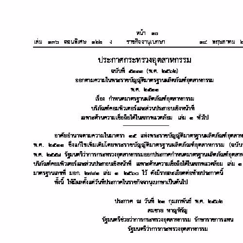 | คำสำคัญ : มาตรฐานผลิตภัณฑ์อุตสาหกรรม, คอมพิวเตอร์และส่วนประกอบ |