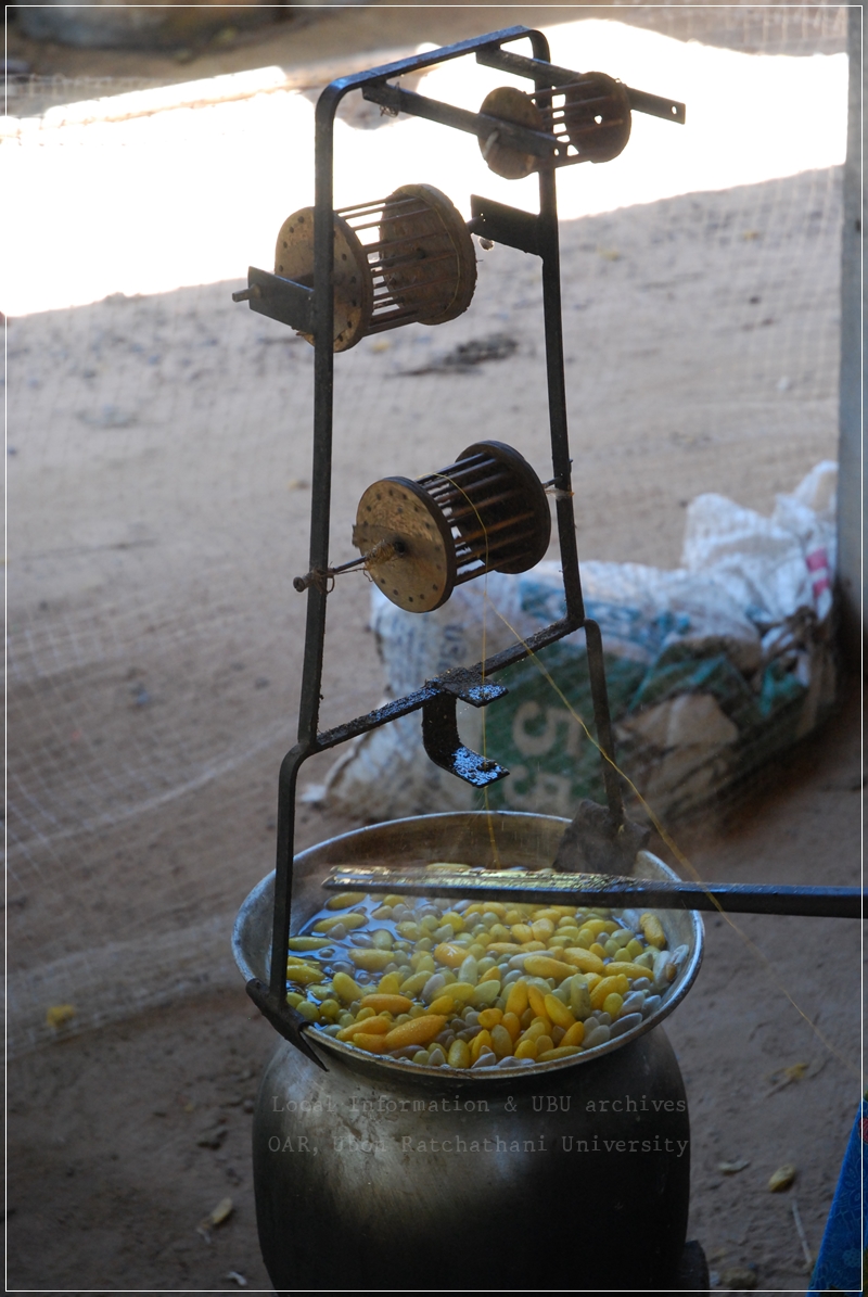 | คำสำคัญ : พวงสาวไหม, เครื่องสาวไหม, การสาวไหม, หัตถกรรมการทอผ้าไหม, การผลิตเส้นไหม |