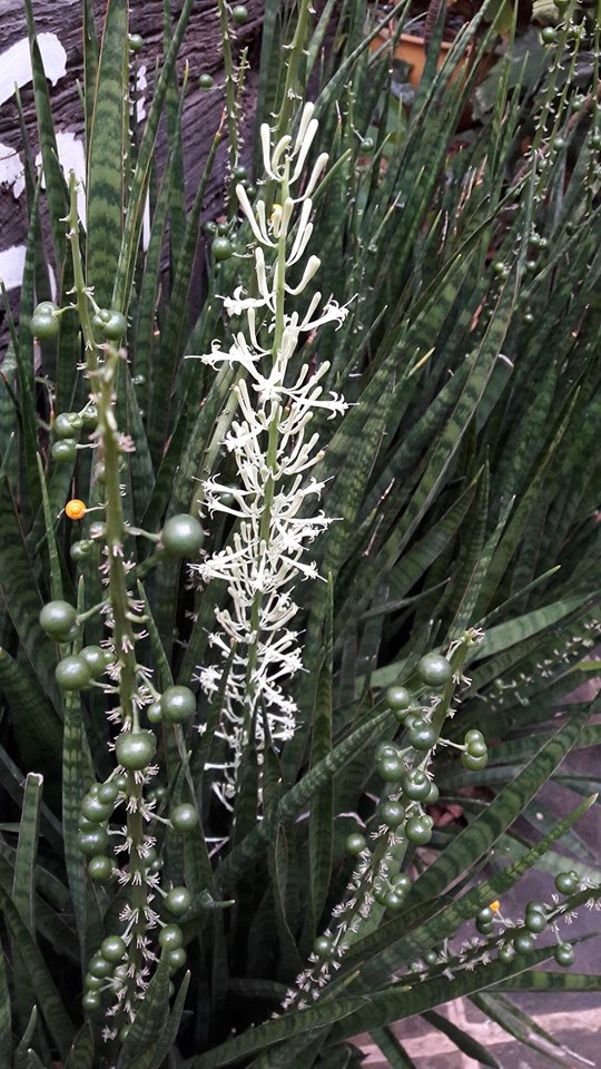 | คำอธิบาย : ต้นลิ้นมังกรออกดอก กลิ่นหอมๆ ไม้ประดับช่วยฟอกอากาศ |
