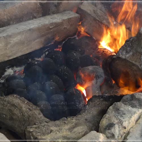 | คำอธิบาย : การสุมเบ้า หรืออุ่นเบ้า ในงานหัตถกรรมเครื่องทองเหลืองบ้านปะอาว จังหวัดอุบลราชธานี เป็นขั้นตอนการเผาเบ้าด้วยไฟความร้อนสูงประมาณ 800-900 องศาเซลเซียส การสุมเบ้าจะทำให้ขี้ผึ้งที่อยู่ในเบ้าละลายออก เมื่อขี้ผึ้งละลายออกหมดจะทำให้เกิดช่องว่างหรือโพรงข้างใน ทองเหลืองเหลวหรือโลหะเหลวก็จะถูกเทลงไปอยู่ในช่องว่างหรือโพรงนี้ เป็นที่มาของกรรมวิธีที่เรียกว่า ขี้ผึ้งหาย |