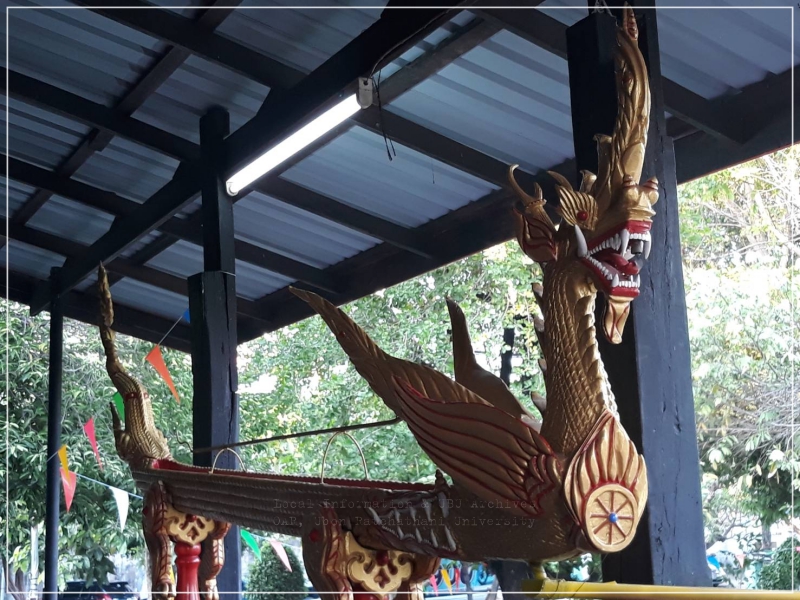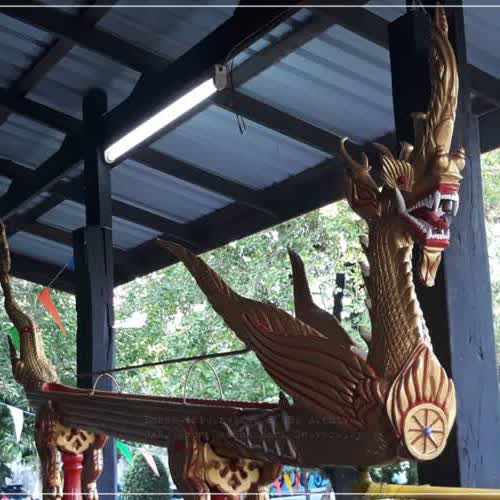 | คำอธิบาย : โฮงฮด หรือ ฮางฮด อุปกรณ์สำคัญในพิธีฮดสรง หรือพิธีรดน้ำพระสงฆ์ที่จบการเล่าเรียนในชั้นต่าง ๆ หรือการเลื่อนสมณศักดิ์ตามประเพณีดั้งเดิมของชาวอีสาน ลักษณะของโฮงฮด จะเป็นไม้แกะสลักเป็นรูปพญานาคยาวประมาณ 3-3.5 เมตร ขึ้นกับขนาดไม้ที่นำมาแกะ มีขาตั้งหรือขาค้ำยัน 2 หรือ 4 ขา |