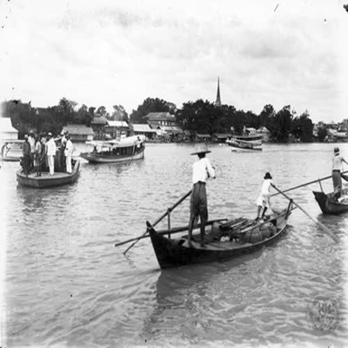 | คำสำคัญ : การวางสายเคเบิลใต้น้ำ, แม่น้ำเจ้าพระยา, เรือ, บ้านริมน้ำ, คนพายเรือ |