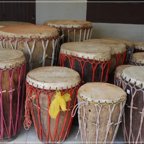 | คำสำคัญ : การตีกลอง, อำเภอตระการพืชผล, อุบลราชธานี, กลองเส็ง, การแข่งขันตีกลอง |