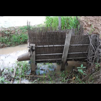 | คำอธิบาย : หลี่ดักปลา เป็นระบบจับปลาที่มีประสิทธิภาพอย่างหนึ่งที่คนอีสานโบราณได้ช่วยกันคิดประดิษฐ์ขึ้น กรณีที่มีร่องน้ำลำธารหรือลำห้วยที่น้ำไหลแรง เวลาหน้าน้ำมีน้ำไหลปลาจะมาตามน้ำ ชาวบ้านจะทำหลี่ดักปลาทั้งหมดที่มาตามน้ำ ลักษณะหลี่ด้านหน้าจะต่ำ ด้านหลังจะสูงขึ้นหรือระดับน้ำ ตรงท้ายหลี่จะมีที่ใส่ปลาขนาดใหญ่ ทุกสิ่งทุกอย่างที่ไหลมากับน้ำจะผ่านหลี่ทั้งหมดโครงสร้างของหลี่ได้ถูกออกแบบให้ทนต่อแรงการไหลของน้ำ ซึ่งมีแรงปะทะของน้ำมาก หลี่จะมีประสิทธิภาพสูงจะต้องเป็นที่มีน้ำไหลแรงมาก ๆ ปลาไม่สามารถว่ายทวนน้ำได้ ปลาจะถูกน้ำดันไปรวมกันในตุ้มเก็บปลาตรงท้ายหลี่ ถ้าน้ำไหลไม่แรงปลาสามารถว่ายทวนน้ำออกไปได้หลี่ก็ใช้ไม่ได้ผล |