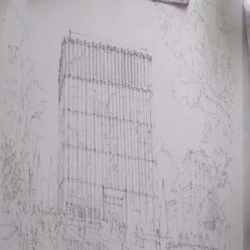 สอนระบายสีน้ำ ต้นไม้ ท้องฟ้า อาคารบ้านเรือน