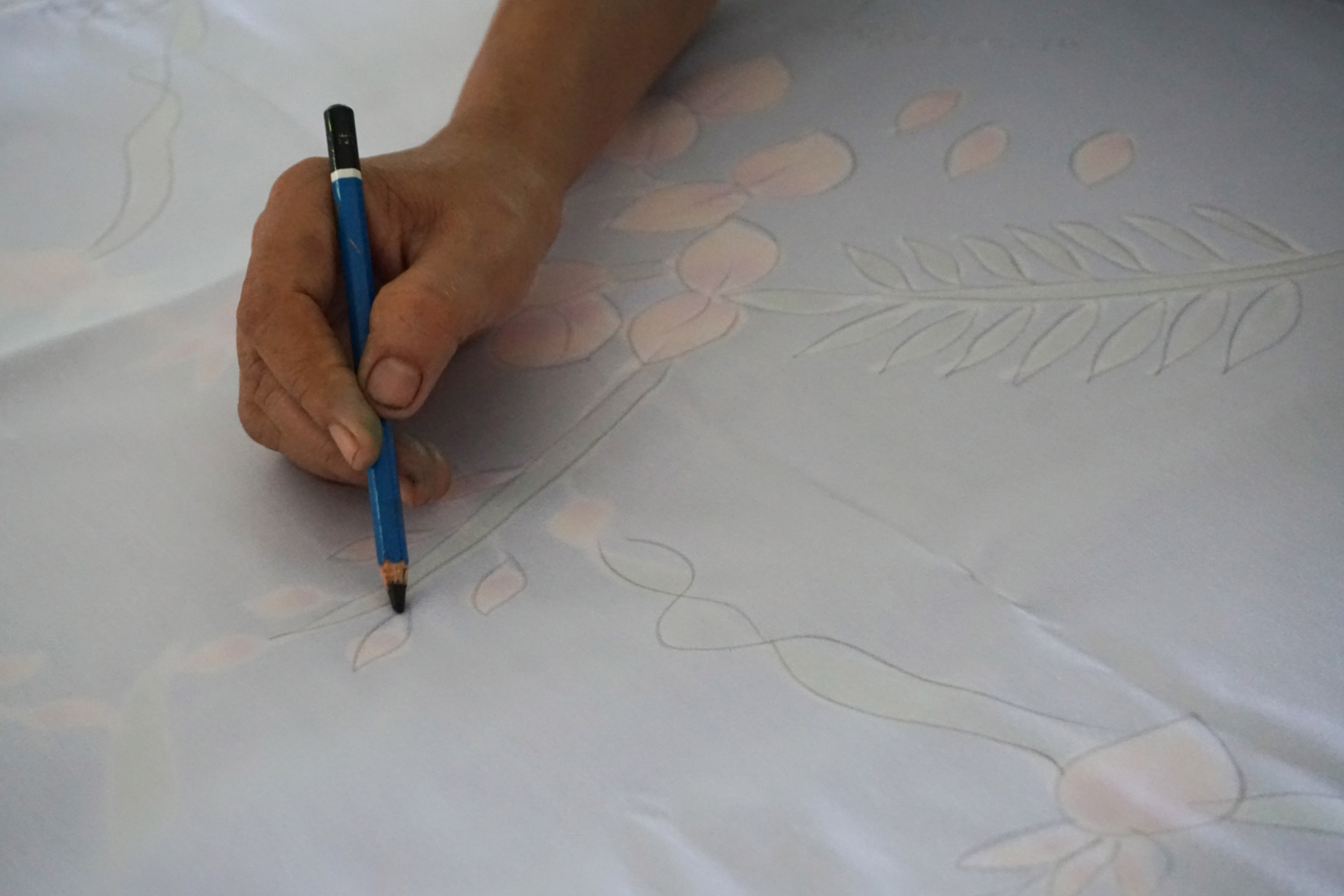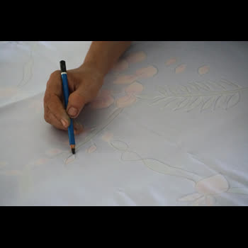 | คำอธิบาย : การทำผ้าบาติกของสมาชิกกลุ่มมัดย้อมสีธรรมชาติบ้านคีรีวง อ.ลานสกา จ.นครศรีธรรมราช โดยสีที่ได้และใช้มาจากธรรมชาติ เช่น เปลือกมังคุดที่ให้สีม่วง |