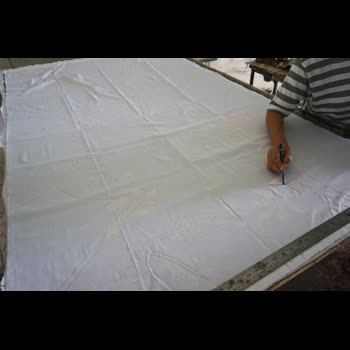 | คำอธิบาย : การทำผ้าบาติกของสมาชิกกลุ่มมัดย้อมสีธรรมชาติบ้านคีรีวง อ.ลานสกา จ.นครศรีธรรมราช โดยสีที่ได้และใช้มาจากธรรมชาติ เช่น เปลือกมังคุดที่ให้สีม่วง |