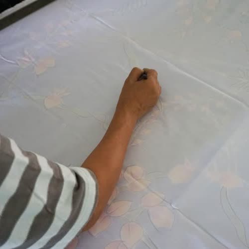 | คำอธิบาย : การทำผ้าบาติกของสมาชิกกลุ่มมัดย้อมสีธรรมชาติบ้านคีรีวง อ.ลานสกา จ.นครศรีธรรมราช โดยสีที่ได้และใช้มาจากธรรมชาติ เช่น เปลือกมังคุดที่ให้สีม่วง |