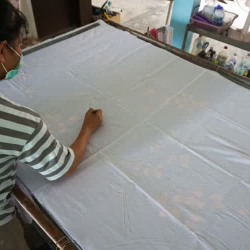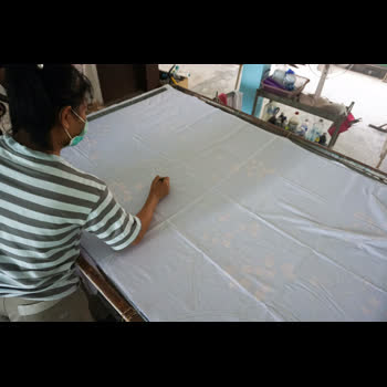| คำอธิบาย : การทำผ้าบาติกของสมาชิกกลุ่มมัดย้อมสีธรรมชาติบ้านคีรีวง อ.ลานสกา จ.นครศรีธรรมราช โดยสีที่ได้และใช้มาจากธรรมชาติ เช่น เปลือกมังคุดที่ให้สีม่วง |