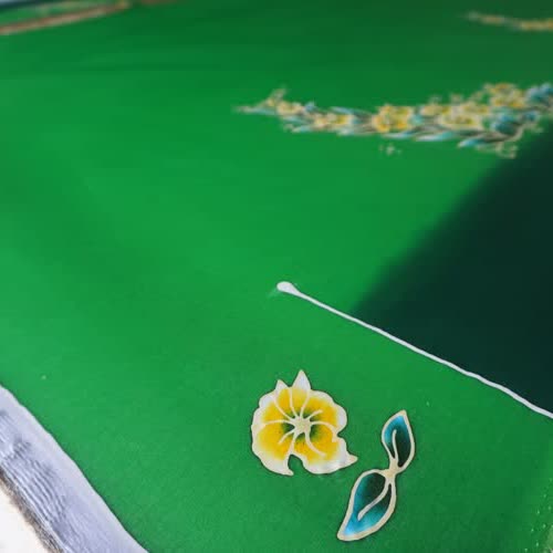 | คำอธิบาย : การทำผ้าบาติกของสมาชิกกลุ่มมัดย้อมสีธรรมชาติบ้านคีรีวง อ.ลานสกา จ.นครศรีธรรมราช โดยสีที่ได้และใช้มาจากธรรมชาติ เช่น เปลือกมังคุดที่ให้สีม่วง |
