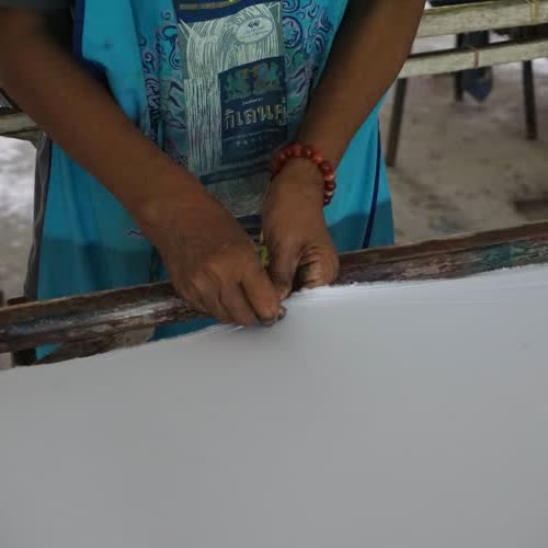 | คำอธิบาย : การทำผ้าบาติกของสมาชิกกลุ่มมัดย้อมสีธรรมชาติบ้านคีรีวง อ.ลานสกา จ.นครศรีธรรมราช โดยสีที่ได้และใช้มาจากธรรมชาติ เช่น เปลือกมังคุดที่ให้สีม่วง |