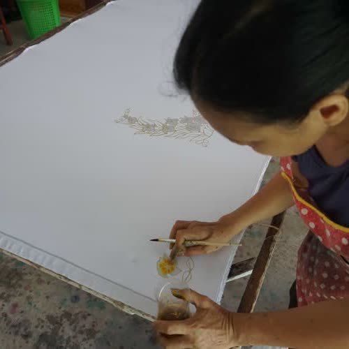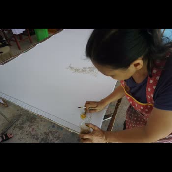 | คำอธิบาย : การทำผ้าบาติกของสมาชิกกลุ่มมัดย้อมสีธรรมชาติบ้านคีรีวง อ.ลานสกา จ.นครศรีธรรมราช โดยสีที่ได้และใช้มาจากธรรมชาติ เช่น เปลือกมังคุดที่ให้สีม่วง |