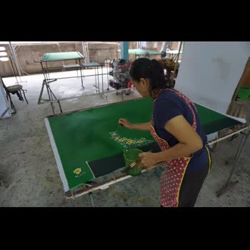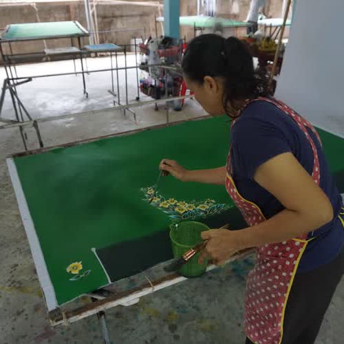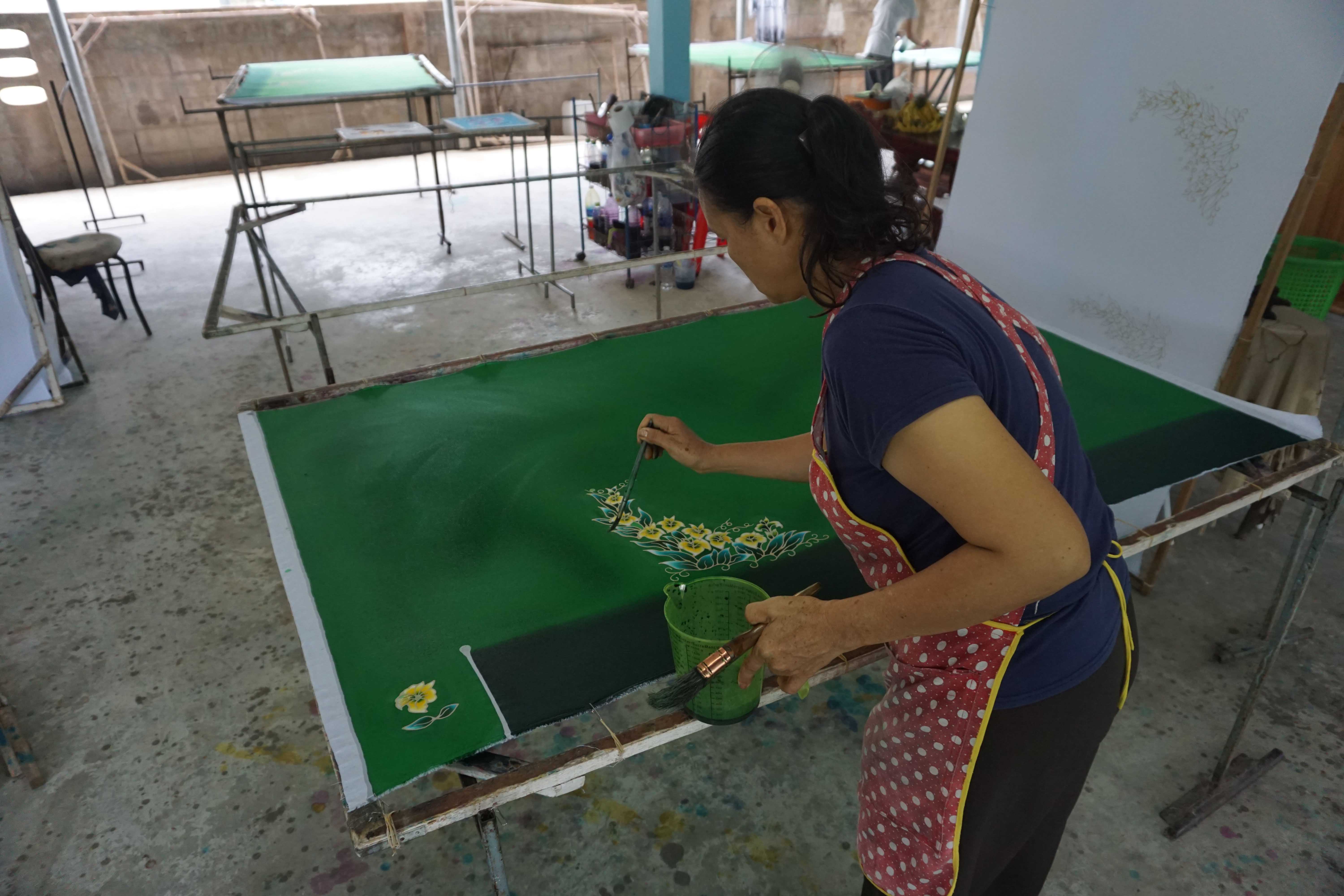 | คำอธิบาย : การทำผ้าบาติกของสมาชิกกลุ่มมัดย้อมสีธรรมชาติบ้านคีรีวง อ.ลานสกา จ.นครศรีธรรมราช โดยสีที่ได้และใช้มาจากธรรมชาติ เช่น เปลือกมังคุดที่ให้สีม่วง |