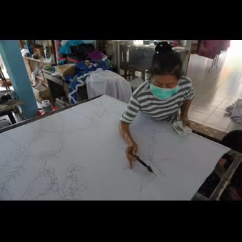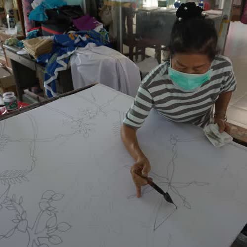 | คำอธิบาย : การทำผ้าบาติกของสมาชิกกลุ่มมัดย้อมสีธรรมชาติบ้านคีรีวง อ.ลานสกา จ.นครศรีธรรมราช โดยสีที่ได้และใช้มาจากธรรมชาติ เช่น เปลือกมังคุดที่ให้สีม่วง |