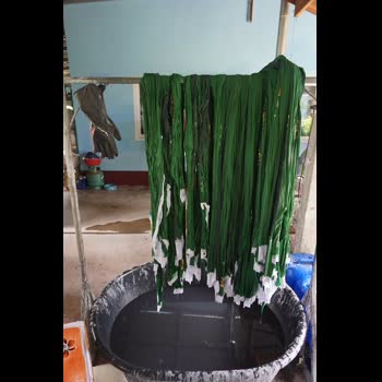 | คำอธิบาย : การทำผ้าบาติกของสมาชิกกลุ่มมัดย้อมสีธรรมชาติบ้านคีรีวง อ.ลานสกา จ.นครศรีธรรมราช โดยสีที่ได้และใช้มาจากธรรมชาติ เช่น เปลือกมังคุดที่ให้สีม่วง |