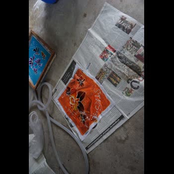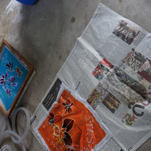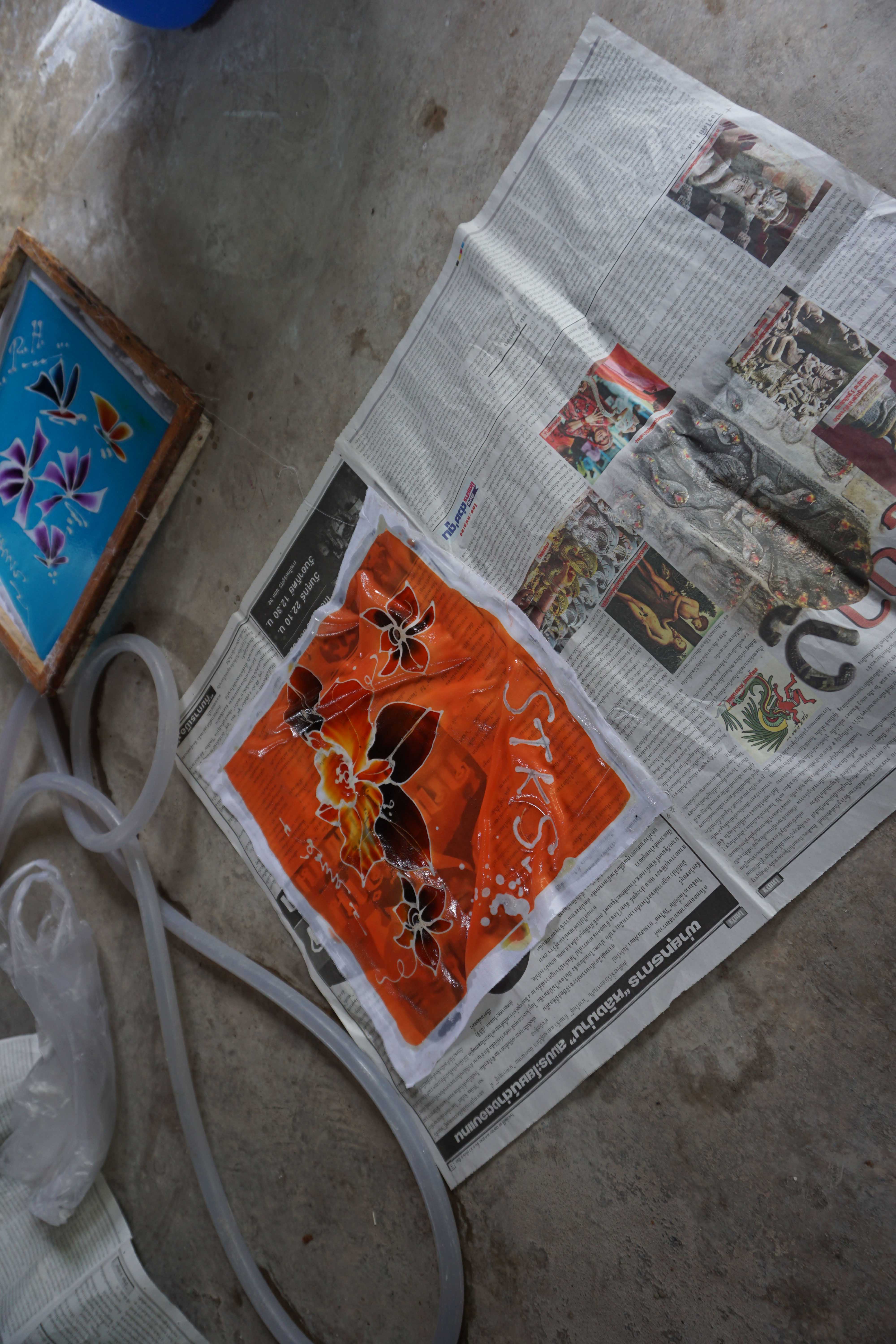 | คำอธิบาย : การทำผ้าบาติกของสมาชิกกลุ่มมัดย้อมสีธรรมชาติบ้านคีรีวง อ.ลานสกา จ.นครศรีธรรมราช โดยสีที่ได้และใช้มาจากธรรมชาติ เช่น เปลือกมังคุดที่ให้สีม่วง |