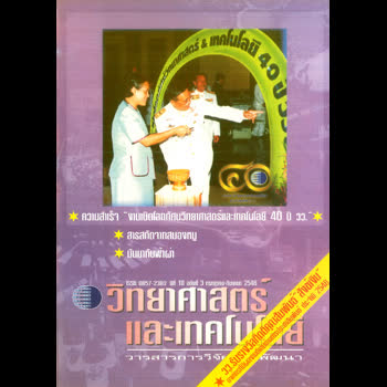 | คำสำคัญ : เทคโยโลยีเพื่อสิ่งแวดล้อม, มุมเศรษฐกิจเทคโนโลยี, มุมอินเทอร์เน็ต, สาหร่าย, หนู ไม่ใช่ หมูหมู, ยำเทคโน, โรค SARSสมุนไพรเภสัชตำรับของสาธารณรับประชาชนจีน, เรื่องของใยอาหาร, โครงสร้างจุลภาคของดินเหนียว, ข่าวเทคโนโลยีสำหรับชาวชนบท, เปิดโลกทัศน์ 40 ปี วว., สารสกัดจากสมองหมู, มันมากับฟ้าผ่า, มารู้จักสารหนูกันเถอะ, วิทยาศาสตร์ก้าวหน้า, Anti-aging Treatment |
