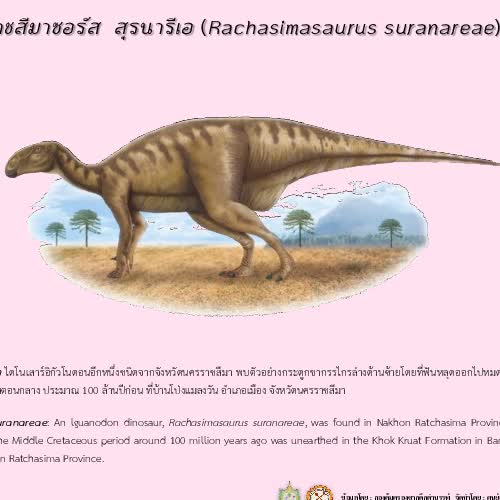 | คำสำคัญ : ไดโนเสาร์ประเทศไทย, ราชสีมาซอรัส สุรนารีเอ, ไดโนเสาร์ |