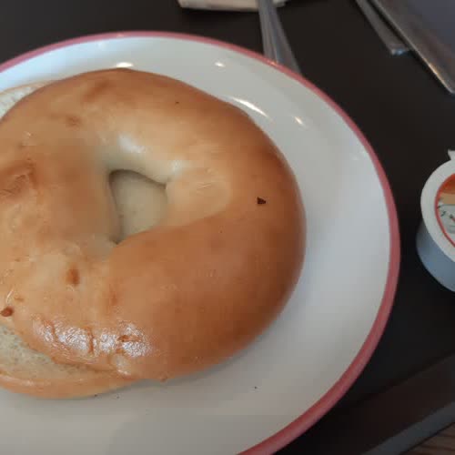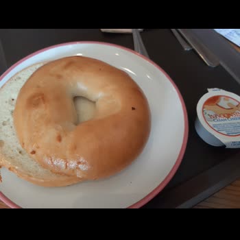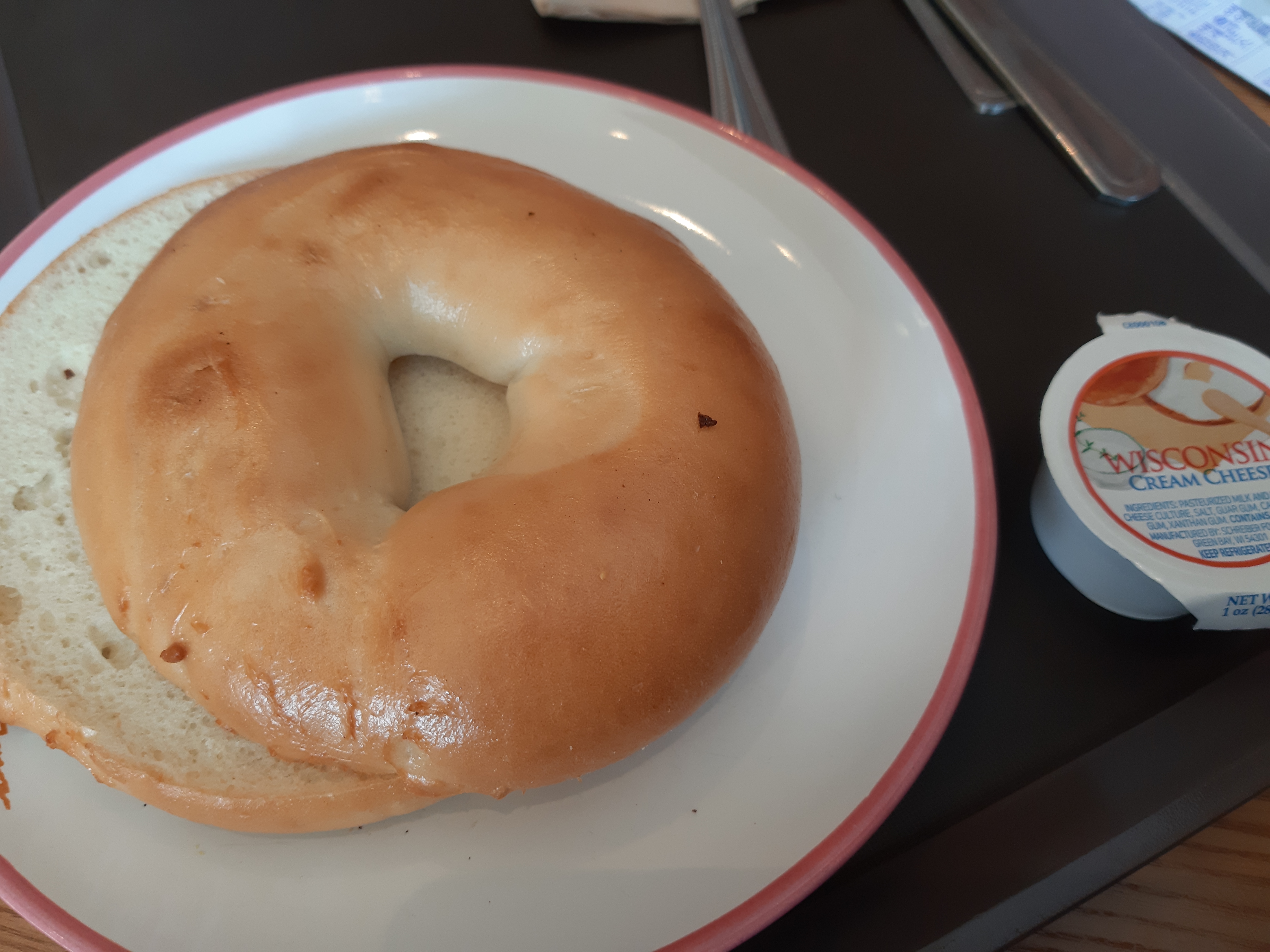 | คำอธิบาย : bagel for breakfast ขนมปังมีรูเนื้อแน่นแป้งเหนียวหนึบ |