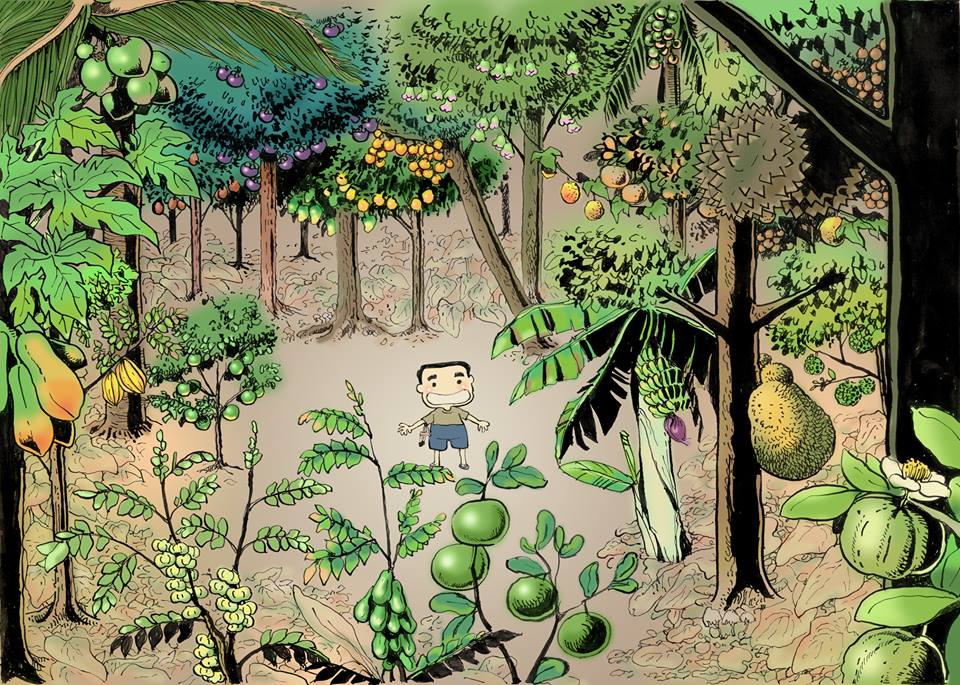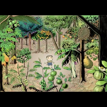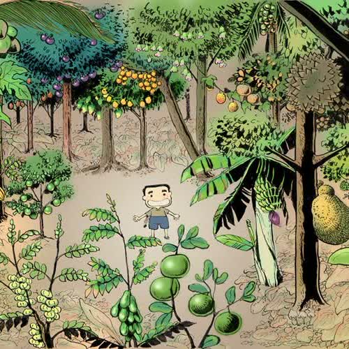 | คำอธิบาย : เกิดมาก็เจอแต่ต้นไม้...ต้นไม้...ต้นไม้....จนรู้ตัวเองแล้วว่าอยู่โดยขาดต้นไม้ไม่ได้ มันอยู่รายรอบตัวมากจริงๆในสวนเล็กๆนั่น มีทั้ง มะละกอ มะพร้าว ละมุด มังคุด มะปราง มะม่วง มะไฟ ชมพู่ ฟักข้าว กระท้อน หมาก ลำไย น้อยหน่า ขนุน ทุเรียน ฝรั่ง กล้วย มะนาว ส้มโอ มะยม ตะลิงปริง มะเฟือง เพื่อนๆลองดูซิ เจอต้นอะไรบ้าง |