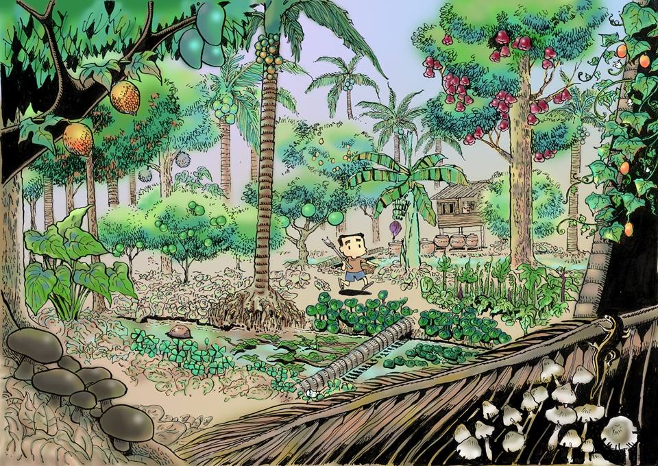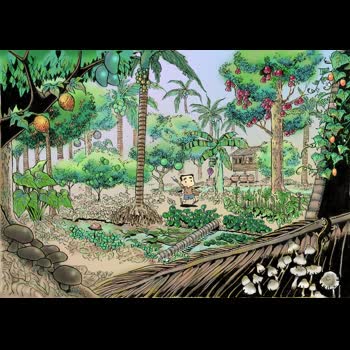 | คำอธิบาย : อยู่สวนเมื่อก่อน รู้สึกว่าชีวิตนี้ไม่ต้องมีเงินมากมายอะไร เพราะในสวนเหมือนมีขุมทรัพย์ซ่อนอยู่ในนั้นนั่นปลีกล้วยเหมาะทำแกงเลียงหรือยำกะทิ ที่ชื้นแฉะนั่นก็ผักหนามรอให้เด็ดยอดอ่อนไปแกงส้ม ริมท้องร่องใบบัวบกกับผักแว่นแย่งกันชูอวดใบให้เด็ดไปจิ้มน้ำพริกบอนแย่งกันขึ้นรับแดดก็ไปแกงได้แต่ต้องทำเป็นนะ ม่ายงั้นคันปากแย่แน่ บนกิ่งมะม่วงนั่นเถาฟักข้าวมีลูกรอให้เด็ดไปต้มกะทิจิ้มน้ำพริก ในท้องร่องนั้นผักบุ้งทอดเลื้อยรอให้เด็ดยอดไปกินกับน้ำพริกผักตับเต่าที่เหมือนใบบัวบกรอให้เก็บไปกินกับน้ำพริกปลาย่าง นั่นเลื้อยรุงรังอยู่โคนมะพร้าวก็ตำลึงใบเขียวเข้มเป็นมันโคนมะม่วงร่มชื้นก็มีเห็ดตับเต่าไปแกงคั่วอร่อยๆนั่นแอบใต้ทางมะพร้าวผุมีเห็ดโคนที่อร่อยที่สุดในหมู่เห็ดแทงดอกมาให้เห็น แค่ไปต้มน้ำแกงใส่กระเทียมแล้วใส่เห็ดโคนเท่านั้น ซดน้ำแกงเห็นสวรรค์รำไร |