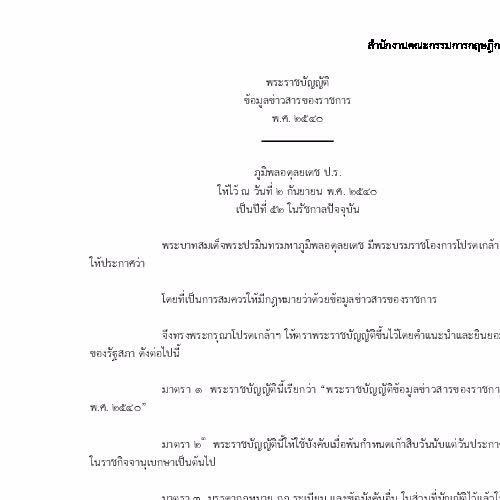 "พระราชบัญญัติข้อมูลข่าวสารของราชการ พ.ศ. 2540 ปรับปรุงพฤศจิกายน 2556".