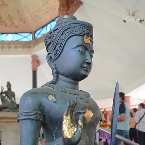 คำอธิบาย : วัดสำหรับสักการะบูชาพระราหูอสูรเทพแห่งสีดำ ผู้สักการะบูชาจึงต่างพากันนำของดำมาถวาย |