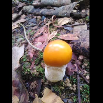 | คำอธิบาย : เห็ดระโงกเหลือง (Amanita hemibapha) เห็ดกลุ่มไมคอร์ไรซา พึ่งพารากไม้วงศ์ยางในการเจริญเติบโต |
