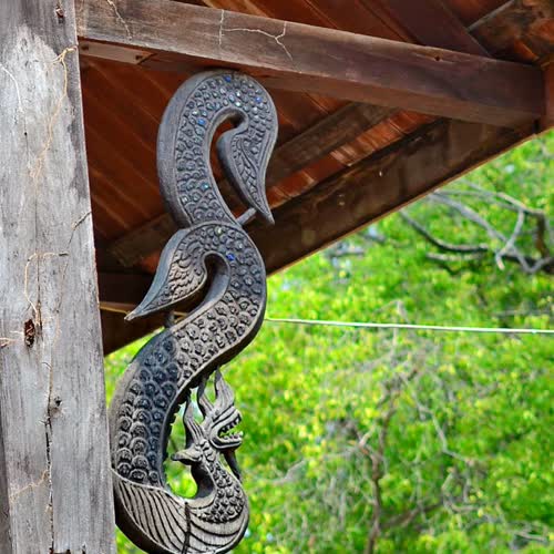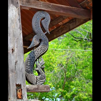 | คำอธิบาย : คันทวยไม้แกะสลัก เป็นงานศิลปกรรมท้องถิ่นที่เป็นเอกลักษณ์ของสิมวัดแจ้ง จังหวัดอุบลราชธานี มีลักษณะเป็นรูปหัวพญานาคมีหงอนสะบัดปลายเป็นกนกเปลว หางหงส์ |