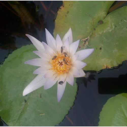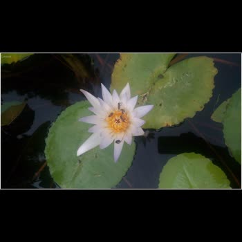 | คำสำคัญ : ดอกบัวสีขาวและผึ้ง, ดอกไม้, ใบบัว, ไม้น้ำ |