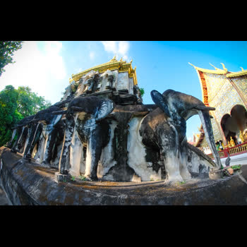 | คำอธิบาย : เจดีย์ช้างล้อม เป็นเจดีย์รูปทรงสถาปัตยกรรมล้านนาฐานช้างล้อม |