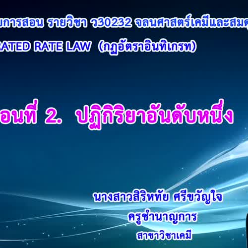 | ชื่อเรื่อง : Integrated ratw Law กฎอัตราอินทิเกรท ปฏิกิริยาอันดับหนึ่ง |