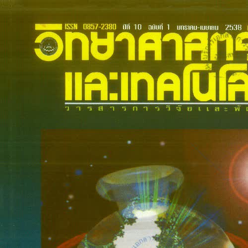 | ชื่อเรื่อง : วารสารวิทยาศาสตร์และเทคโนโลยี ปีที่ 10 ฉบับที่ 1 เดือน ม.ค.-เม.ย.38 |