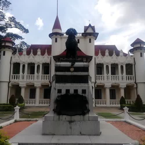 | คำอธิบาย : พระตำหนักชาลีมงคลอาสน์ เป็น 1 ใน 4 พระตำหนักภายในพระราชวังสนามจันทร์ เป็นพระตำหนัก 2 ชั้น ลักษณะคล้ายปราสาทผสมระหว่างศิลปะเรอแนซ็องส์ของประเทศฝรั่งเศสกับอาคารแบบฮาล์ฟ ทิมเบอร์ของประเทศอังกฤษ จุดเด่นของพระตำหนักอยู่ที่ป้อมหรือหอคอยที่มุมอาคาร ยอดหลังคาเป็นกรวยแหลมแบบปราสาท ด้านหน้าของพระตำหนักมีอนุสาวรีย์ของ ย่าเหล สุนัขที่พระองค์ทรงเลี้ยง |