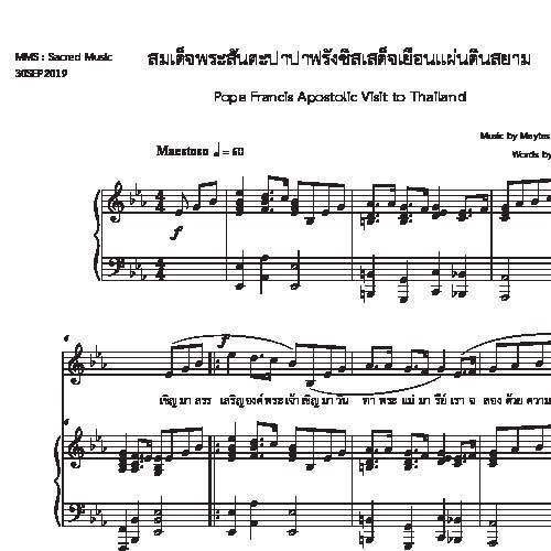 | ชื่อเรื่อง : โน้ตเพลงสมเด็จพระสันตะปาปาฟรังซิสเสด็จเยือนแผ่นดินสยาม |
