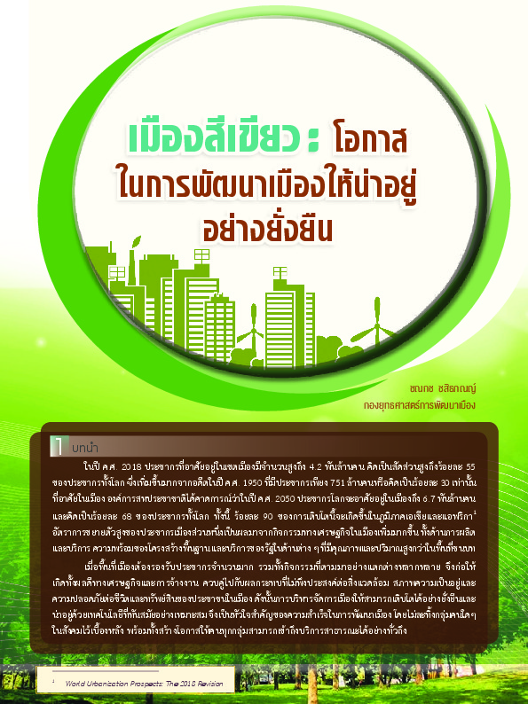 | ชื่อเรื่อง : เมืองสีเขียว : โอกาสในการพัฒนาเมืองให้น่าอยู่อย่างยั่งยืน |