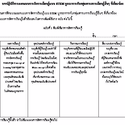 | ชื่อเรื่อง : การออกแบบเรียนรู้ STEM |