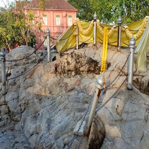| คำอธิบาย : รอยพระพุทธบาทบริเวิณเนินหินอ่อนมีลักษณะรอยเท้าใหญ่ ชาวบ้านมีความเชื่อว่าเป็นรอยพระพุทธบาทของพระพุทธเจ้า บ้างก็ว่าเป็นรอยเท้าของพรานบุญ |