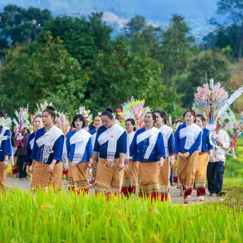 | คำอธิบาย : ขบวนคัวตานกฐินเข้าสู่วัดห้วยริน งานบุญกฐินล้านนาเมืองแจ่ม ประจำปี 2562 ของชมรมพิพิธสยามและกัลยามิตร ณ วัดห้วยริน อ.แม่แจ่ม จ.เชียงใหม่ 3 พ.ย.84 |