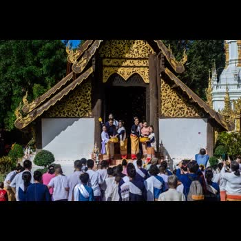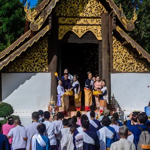 | คำสำคัญ : วัดห้วยริน, งานบุญกฐินล้านนาเมืองแจ่ม, การโปรยทาน, ถวายผ้ากฐิน, บุญกฐินล้านนาเมืองแจ่ม, บุญกฐิน, ศิลปวัฒนธรรมล้านนา, ทำบุญทำทาน |