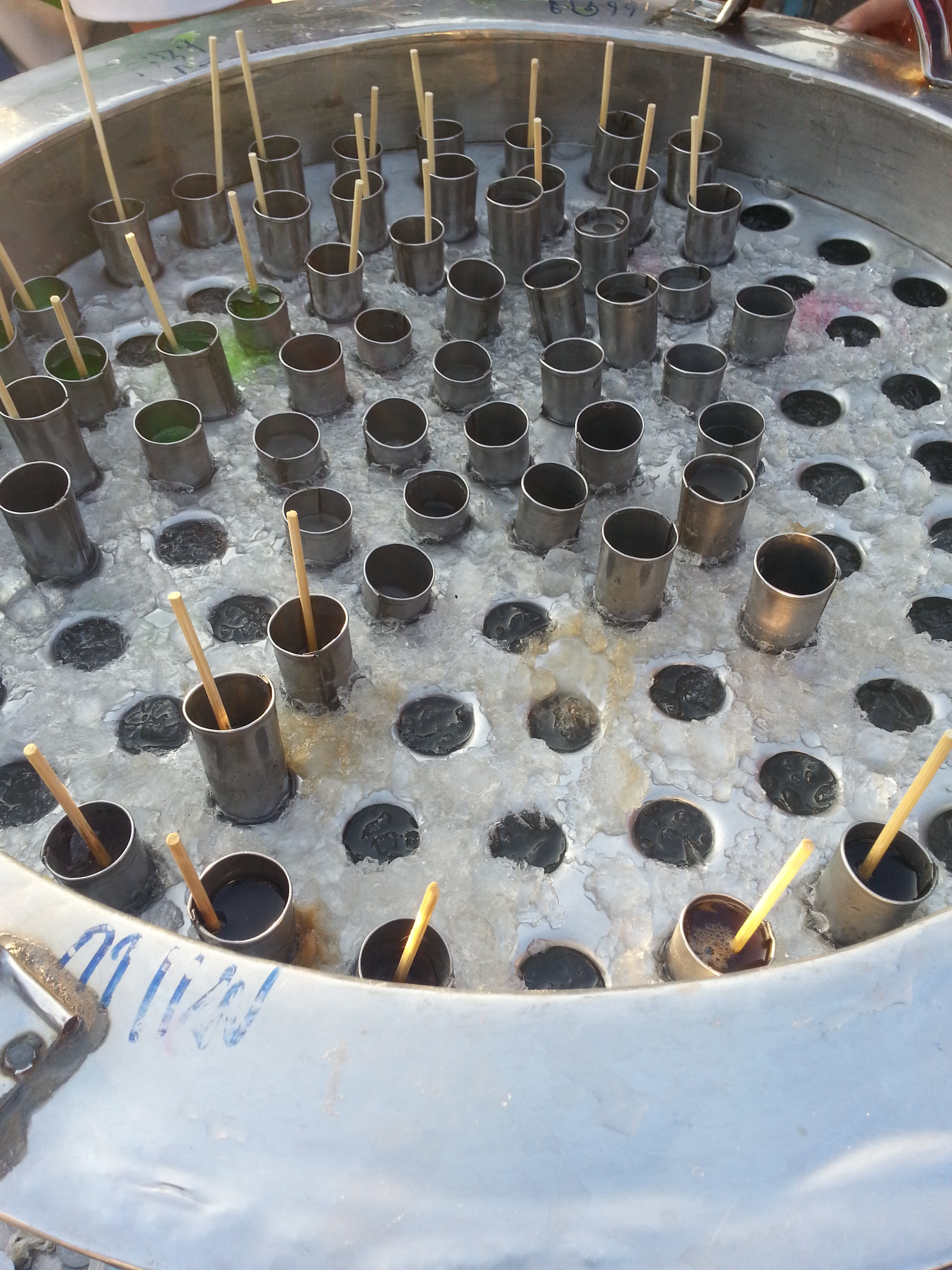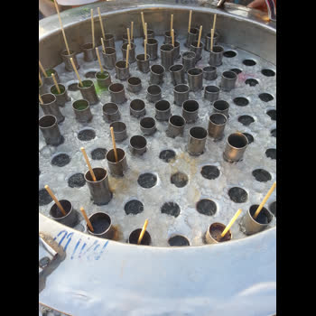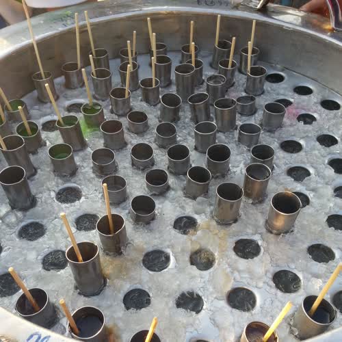 | คำอธิบาย : ไอศกรีมหลอด หรือไอศกรีมแท่งก็เกิดขึ้นในสมัยรัชกาลที่ 7 โดยใช้น้ำหวานใส่หลอดสังกะสีและเขย่าให้แข็ง และมีก้านไม้เสียบ โดยจะใส่ถังขับไปขายตามถนน สั่นกระดิ่งเป็นสัญญาณเพื่อเรียกลูกค้า |