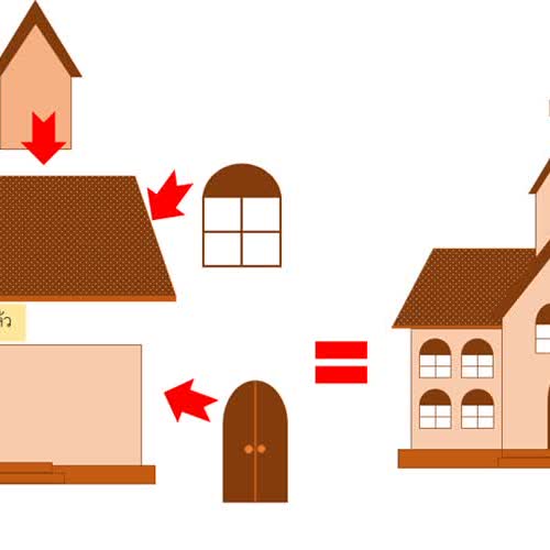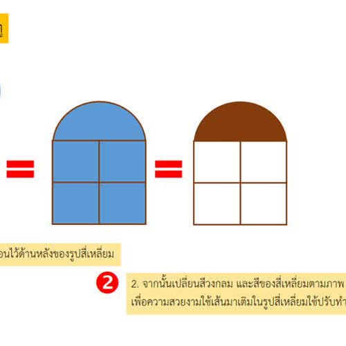 การวาดรูปบ้านด้วย Microsoft PowerPoint ได้รับใบอนุญาตภายใต้ ให้เผยแพร่-ดัดแปลง-โดยต้องระบุที่มาแต่ห้ามใช้เพื่อการค้า 3.0 Thailand.