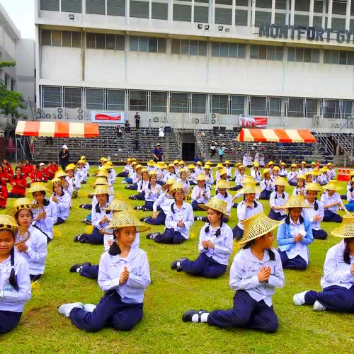 | คำอธิบาย : นักเรียนในเครือคณะเซนต์ปอลฯ จำนวนกว่า 800 คน ซ้อมการแสดง รำ 4 ภาค โดยการแสดงชุดนี้เป็นการแสดงถวายแด่พระสันตะปาปา หลังจบพิธีมิสซา วันที่ 21 พฤศจิกายน ค.ศ. 2019 ที่สนามศุภชลาศัย สนามกีฬาแห่งชาติ ในการเสด็จเยือนประเทศเทศไทย ของสมเด็จพระสันตปาปาฟรังซิส |