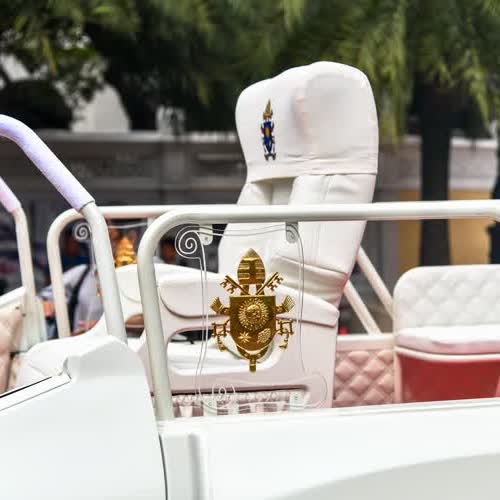 | คำอธิบาย : รถโป๊ปโมบิล (Popemobile) พระพาหนะที่จะนำ สมเด็จพระสันตะปาปาฟรังซิส ไปตามเส้นทางเสด็จเยือนสถานที่ต่างๆ เพื่อพบปะทักทายคริสตศาสนิกชนและชาวไทย ระหว่างการเสด็จเยือนประเทศไทย ระหว่างวันที่ 20-23 พฤศจิกายน ค.ศ.2019 |