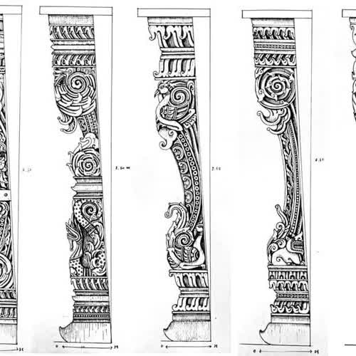 | คำอธิบาย : ภาพลายเส้นเบื้องต้นของสิมวัดวังไฮ บ้านวังไฮ ตำบลคำเตย อำเภอเมือง จังหวัดนครพนม เป็นภาพร่างที่ได้แรงบันดาลใจมาจากรูปแบบสถาปัตยกรรมสิมอีสานแบบพื้นบ้านที่ได้รับอิทธิพลศิลปะลาวล้านช้าง จากการศึกษาลงพื้นที่เก็บข้อมูลจากสถานที่จริงและภาพถ่ายโบราณ จึงนำเอาองค์ประกอบต่างๆ ที่พบมาเรียบเรียงขึ้นมาเป็นสิมหลังใหม่ ก่อนส่งงานต่อให้กับสถาปนิกขยายแบบต่อเป็นแบบ 3 มิติ โดยภาพนี้คือ ภาพร่างคันทวย |