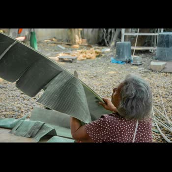 | ชื่อเรื่อง : เตรียมใบตองในการทำเครื่องบวงสรวงสักการะ |