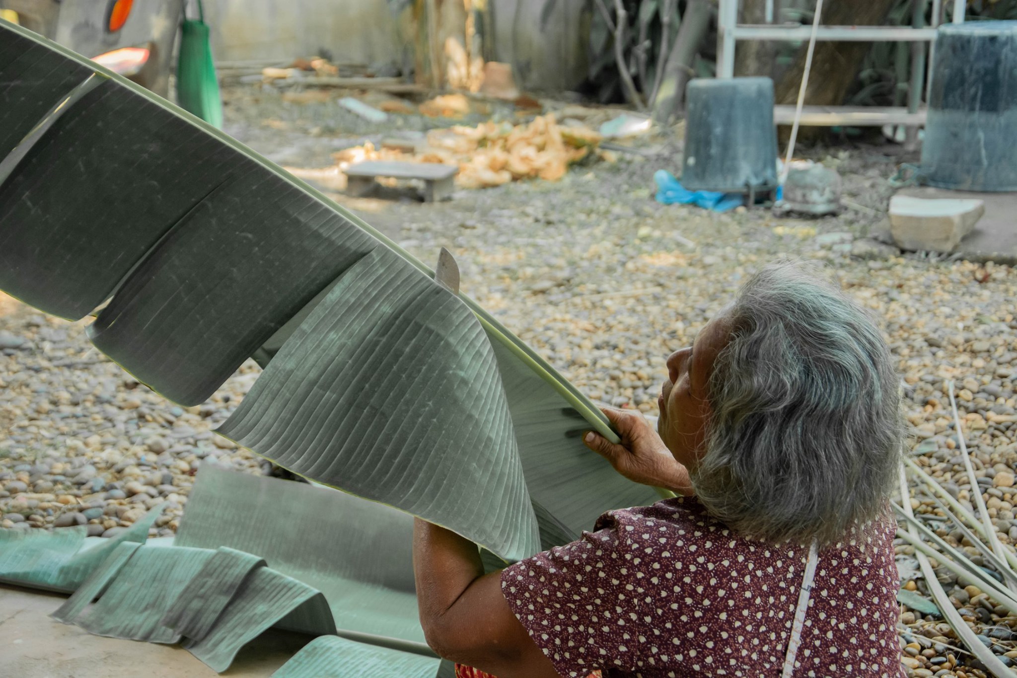 เตรียมใบตองในการทำเครื่องบวงสรวงสักการะ